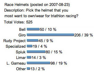 Louis Garneau runs a surprisingly strong second place, with one in five respondents choosing this brand. Maybe its association with Chris Legh has something to do with it. But it’s also likely that since this poll asked triathletes what they’ll race in, the fact that Garneau’s Rocket is one of the few aero helmets worth using pumps up its numbers.