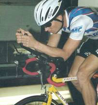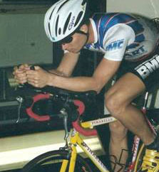 Next I moved on to aerobar setup. I used a standard adjustable clip on bar on the original road bars. This was not an equipment test, only general positioning guidelines. Not to stray off course here, but I will go into a small discussion about bar positioning and effects. The individual riders shoulder shape, chest shape and back shape all effect the final best position for each rider. This is great to know and if you have access to a wind tunnel, you can work out every last detail for an individual rider, most people don’t have a wind tunnel available or the desire to spend the large amount of money involved. While doing a rider positioning, you need to visually look for problems, wide knees generally aren’t good, loose clothing is terrible, very high shoulder heights are not good and hands lower than the elbow pads generally are a bad thing. I have also found that helmet choice will not effect position choice, get the position right for best aero and power and then get the right helmet.