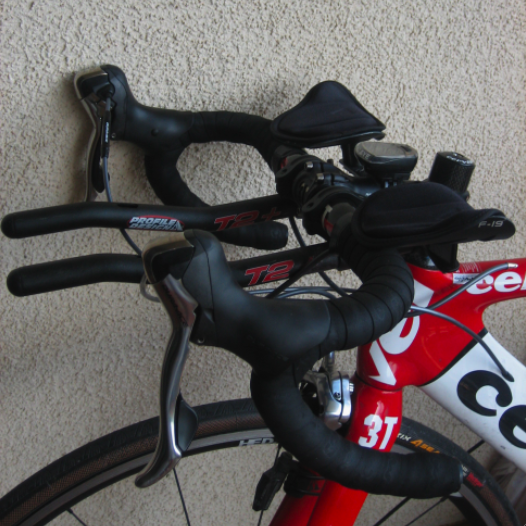 Chrissie: As I am so new to triathlon, Brett has had a big input into everything I do, and the bike is no exception. He told me to ride the P2 rather than the P3, as he thinks I am better suited to it. I don’t question or argue – I just follow orders! This is an autocracy, not a democracy…☺ No seriously, I trust his judgment and am happy to stick with the P2. I feel comfortable on it, and it is what I am used to – which gives me peace of mind. Regarding the set up, again I trust Brett. I agree with his view that my bike handling skills are not good enough for me to get the benefits out of a TT set up, on most courses other than Hawaii, which is why I have road bars. This means that I don’t lose so much time on descents and corners as I would do if I was on a full TT set up.