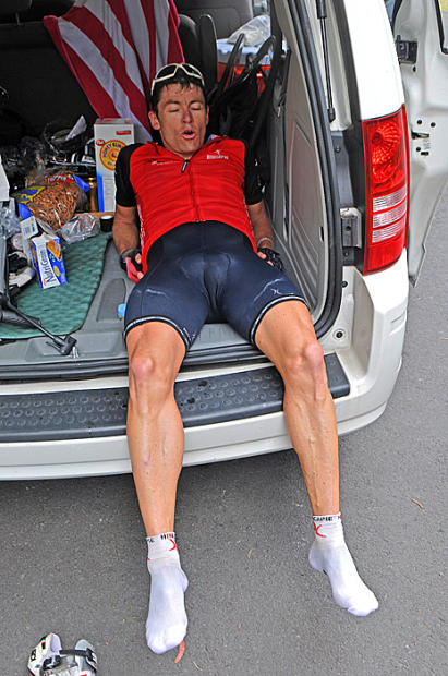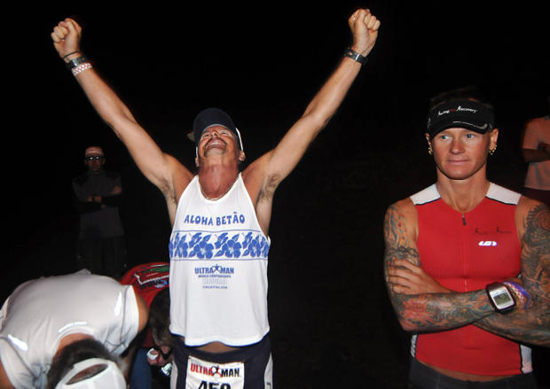 Day two. Vito Bialla, an 8-time Ultraman finisher, warmed up with a 135-mile run at Badwater. At 60, Bialla was the oldest finisher.