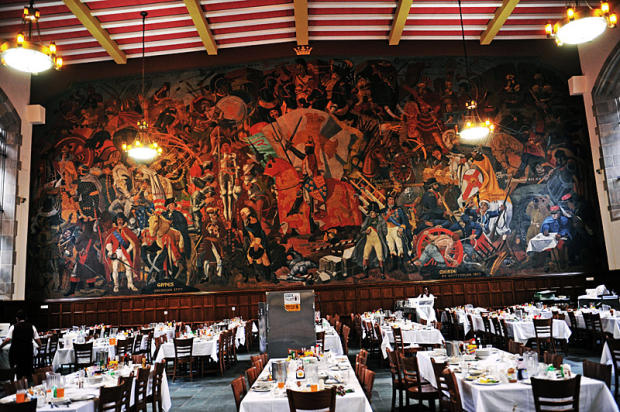 This vast mural in the southwest wing of the mess hall depicts the history of the weapons of warfare used in the twenty most decisive battles in history. Completed in 1936, it was one of the largest unbroken interior paintings in the world, with an overall surface of 2,450 square feet
