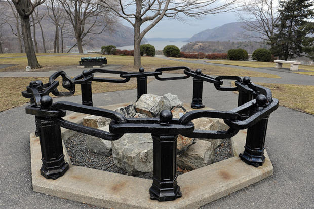 A fragment of a 500-yard Great Chain which was stretched across the river at the West Point garrison during the Revolutionary War to stop British ships from sailing up the Hudson.