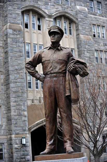 Douglas MacArthur, Class of 1903, and some fellow cadets put the reveille cannon on top of the Clock Tower one night. MacArthur led a brilliant campaign in the South Pacific, made good on his famous “I shall return” promise, said “Old soldiers never die, they just fade away” in his address to Congress after he was relieved of his Korean command by Harry Truman, and made stirring “Duty, Honor Country” speech at West Point in 1962.