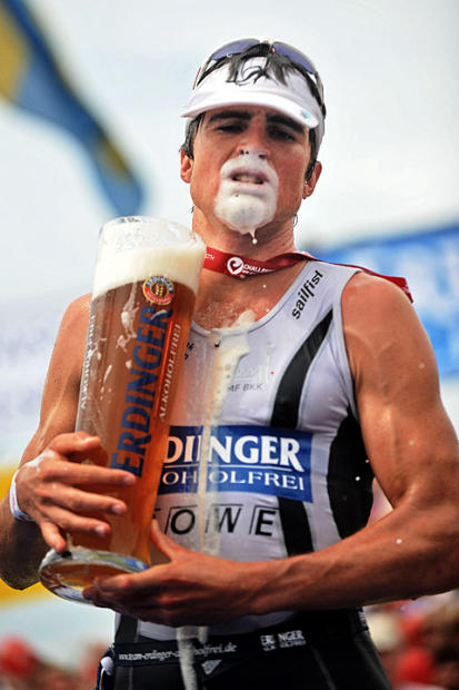 Australian pro Pete Jacobs emerges first with a 45:57 swim, and held his lead until Normann Stadler caught him on the bike. Still, he re-passed Stadler on the run and held second at the line for the second year in a row, bowing only to rising German star Michael Goehner. .