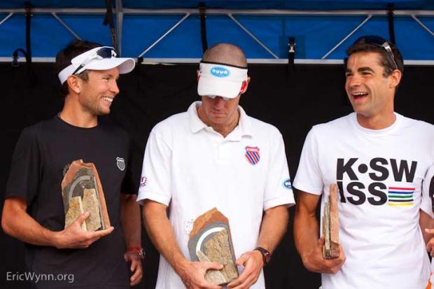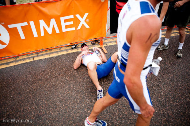 2nd place finisher Paul Matthews is exhausted on the ground with 3rd place finisher Joe Gambles in the foreground