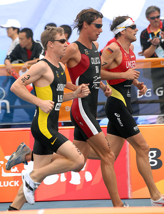 Right now, America’s Big Three in ITU World Cup, short course triathlons have wider interests than the hyper competitive, pure Olympic-style racing. Kemper has won non-drafting big paydays at Life Time Fitness and took a prestigious win at Escape From Alcatraz – but he is also out of action, recovering from an old hip injury. Potts has ruled Escape From Alcatraz, won an Ironman 70.3 World Championship and his entry at this year’s Ironman World Championship is eagerly awaited since his 7th place finish last year on virtually zero long distance training. Matt Reed has shown that he can swim, bike and run with the best in the world in both draft-legal and non-drafting venues and seems to be taking dead aim on the Ironman 70.3 Worlds this year. But his 5th at the ITU World Championship in 2008 remains the high-water mark for current U.S. men in World Championship and Olympic level competition.