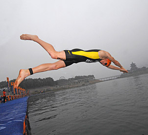 I had an awful swim. At the first turn buoy, there was a little chaos so I went wide and ended up going a long way past. There were so many people who got to the buoy at the same time, they were 10 wide. It was more than a 90-degree turn around the buoy so I ended up losing even more time. I was almost last after the first lap of the swim, but at same time, with the confidence I got from previous races, I believed I could pick things up. On the second lap, I thought about what Simon Whitfield said after a bad first lap in the swim at Tongyeong: “My race is not over. My race is now to see how I can pass as many people as possible on the second lap.” That was all I thought about at the time – to pass as many people as possible. When I came out of the water, I think I was about 30th and trailed by about 15-20 seconds starting the bike.