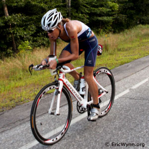 Dede Griesbauer led the Pro women out of the war and managed to gain 2 minutes on Chrissie Wellington and 70.3 Boise winner Magali Tisseyre. Catriona Morrison got out of Lake Winnipesaukee another 30 seconds later.