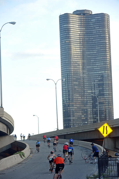 The bike starts with a climb up the ramp to Lakeshore Drive.