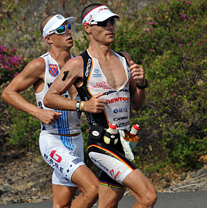 Michael Raelert took Ironman 70.3 Worlds with a blazing 1:09:05 record run and a record 3:34:04 with a 2:40 margin over Daniel Fontana. Raelert broke Terenzo Bozzone's year-old record by 6:04. He went under the radar all year with 5th to 10th place finishes in the Life Time Fitness-Toyota Cup series — then poured it all into his target race. Out shone his brother Andreas' runner-up debut in Clearwater – his half marathon broke Andreas' year-old mark by 1:48 . But Andreas gets credit for coaching little bro to the biggest upset of the year and a world title.