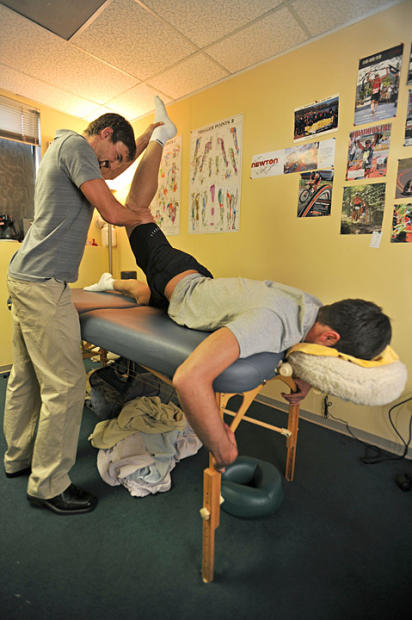Later, Schadle works hard on O'Donnell's hamstring.