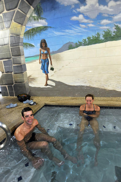 Two full-time Boulder resident world champions – Tim O’Donnell and Julie Dibens – join their fast lane compatriots in the hot tub after Flatirons swim workout.