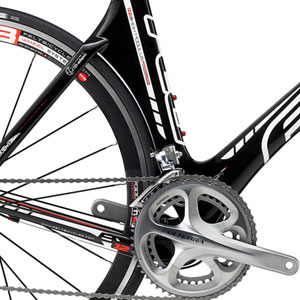 The remaining difference between these models is the crankset. The pricier B12 is built with a Shimano Ultegra crankset, which is a nice thematic fit with the rest of the bike, as the front and rear derailleurs are also Ultegra. The crank is built with 53×39 chainrings.