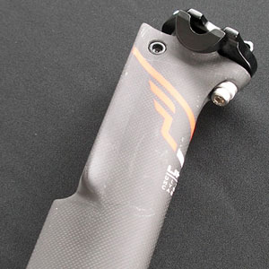 So, for example, you have Shimano's Di2 battery. Not very aero. But the DA seat post has that little air trip just at the seat post's trailing edge, and this—according to Felt—renders the battery's unaero shape moot.