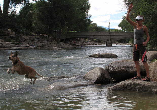 Amico showing his agility and speed retrieving a stick from the Arkansas River in Salida, Colorado.