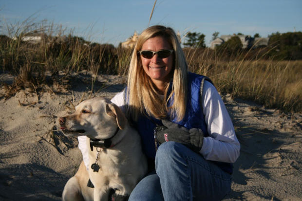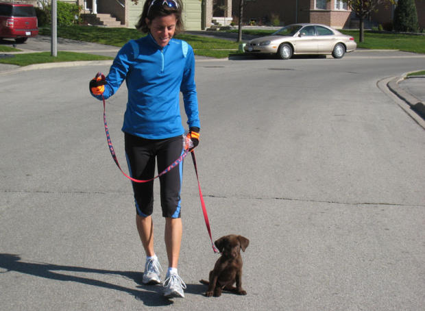Fenway is a 6-month old Chocolate Lab and about to explore the neighborhood with owner Lisa Bentley.