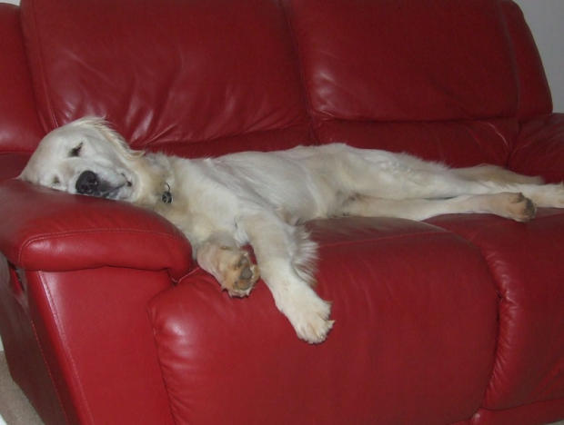 2 ½ year old Golden Retriever Grady is comfortably awaiting the return of his owner Tim Berkel.