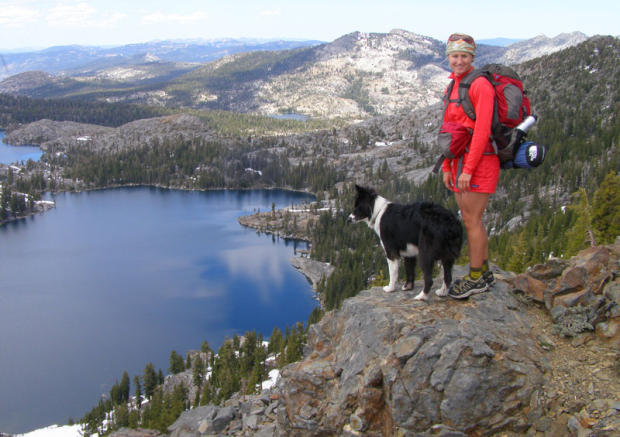 XTERRA pro Emma Garrard calls her 4-year old Border Collie Kip her best training partner ever. Seen here with Emma during a backpacking trip in Desolation Wilderness, Lake Tahoe.