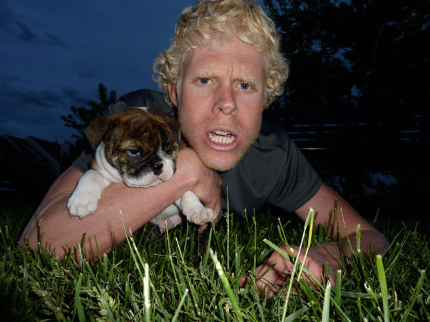 Cameron Dye is enjoying nature with Diesel, his 4-month old English Bulldog.