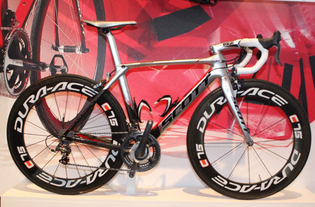 The Scott F1 machine with the Mark Cavendish paint scheme looks fast standing still.