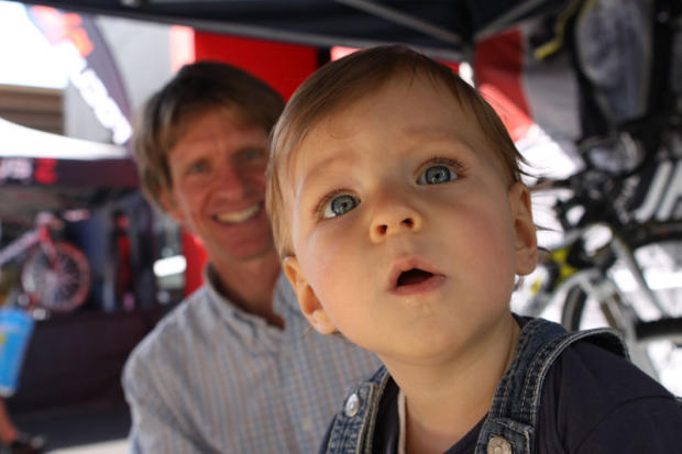 German Pro triathlete Uwe Widmann and his son Tim check out the happenings at Eurobike. His wife Renata was also with them, but not in the pic.