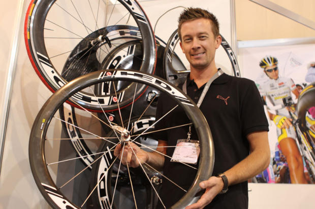Paul Ellis of HED Cycling with the new Stinger 5 that features quite a wide profile and a 50mm depth.