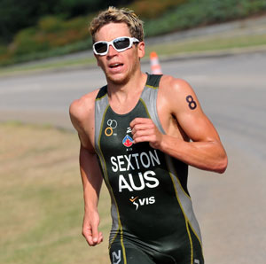 Not to forget 26-year-old Brendan Sexton of Australia, whose best day in the sport was his second place at the 2007 Under 23 ITU World Championship. The 2010 model Sexton was a forgotten factor. Only he was encouraged by his recent 26th place finish at Budapest. "I planed to take it out hard for the first 2 kilometers," said Sexton, who was as good as his word and took a 50 meter lead halfway through the first of four laps of the 10k run. Just 1k into the run, Shoemaker made a charge and breezed by Sexton with what looked like a definitive move.