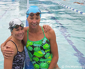 Carfrae’s 2009 Ironman Hawaii second place debut was almost perfect, since it included a record IMH marathon of 2:56:51, topping Wellington’s own mark. Carfrae (pictured adjacent, left), under the coaching of 2001 ITU World Champion Siri Lindley, proceeded to have an almost perfect 2010 season, winning 70.3 titles at Oceanside, the Rev3 Half, Vineman, Calgary and Muskoka, and took a second place at Olympic distance St. Anthony’s, showing she hasn’t lost all her 2004 Athens Olympics speed. The only blot was a DNF defending her 2009 St. Croix 70.3 title. In her winning races, Carfrae’s foot speed remained dominant, with a 1:16:32 half marathon at Vineman 70.3, a 1:18:15 at Muskoka, and a 1:20:15 at Calgary, which was just 3 seconds slower than men’s winner Kieran Doe. But the 22 minutes she lost to Wellington’s 4:52 bike at Kona last year seems to remain the sticking point for 2010. Her 70.3 bike splits of 2:39:55 at Muskoka, 2:30:57 at Calgary, and 2:27:42 at Vineman 70.3 do not indicate she can match Wellington’s all-world 4:36 bike split at Roth, nor Chrissie’s 2:21:16 bike at Kansas. Plus Wellington’s 1:15:12 run at Kansas topped everything Carfrae put up all year at the distance.
