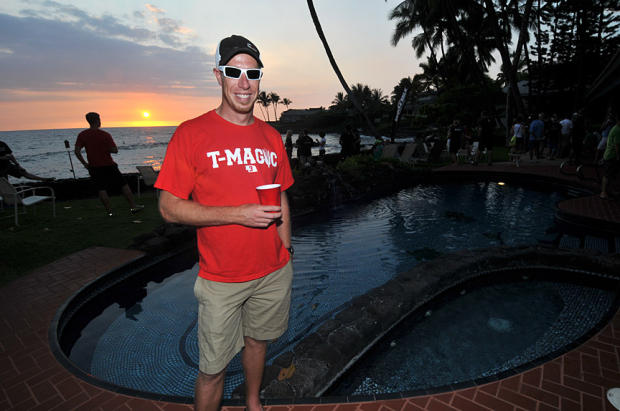 Muscle Milk's Ron Trunick and his wife share the Hawaiian sunset with a kayaker.