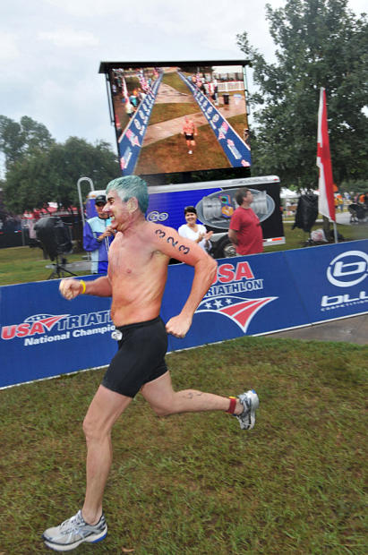 Age group man charges to the finish at the USAT sprint nationals in Tuscaloosa.