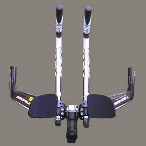 A case in point is Visiontech's old integrated aerobar adjacent. I am a big fan of Vision's aerobars, and only point out that this rather ancient design is the one product this fine company makes that I'm not a fan of. The steering lever is so long, and the drop so severe, as to make the out-of-the-saddle riding quite difficult to execute, and the braking and cornering laborious. While it was a favorite for a lot of pro bike racers who used it back in the day, it is less well adapted for triathletes.