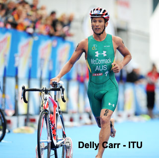 In his heralded return to ITU Olympic-style racing, two-time Ironman World Champion Chris McCormack looked every bit of his 38 years, trailing by 90 seconds after the swim, and falling 5 more minutes back on the bike before pulling out on the 6th of 8 laps on the bike. “Empty tank for me today,” Macca wrote on his Twitter account, referring to his recent 8:19 winning finish at the Ironman distance win at Challenge Cairns. “13 days after Ironman. Kids R fast. I had nothing.” Had he finished his dismal day, McCormack would have been lapped by Brownlee and finished near the end of the 60-man field.