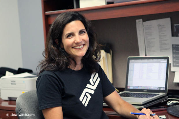 A big number of wheel sets is awaiting shipment to a distributor, but in many cases the wheels are assembled abroad. Here Lona Richmond makes sure all the hubs and spokes are in place for the shipment.