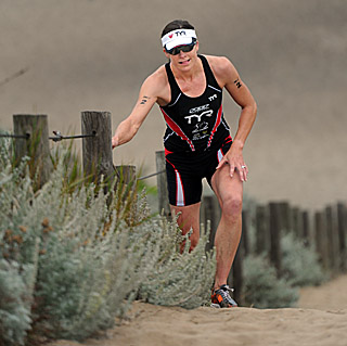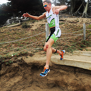 The loss was a disappointment to Fleischmann, who surrendered just 15 seconds to Zaferes' swim, then took charge with a 1:04:20 bike that put 2:18 on Zaferes. On the run, Fleischmann held a significant lead as he hit the soft sand of Baker Beach, but then made a mistake that may have turned the tide. Turning off on a smaller, off-course sand ladder before the correct right turn, Fleischmann lost an estimated 20 seconds and a lot of adrenaline during his excursion. "I was out of touch before he went off course," recalled Zaferes. "But when I came to the sand ladder, I could see him halfway up and I had a target the rest of the way."