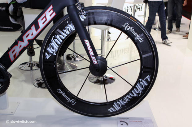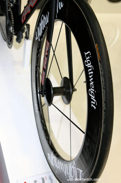 Lightweight presented a new more aerodynamically focused wheel option, but this front wheel is still in the prototype stage.