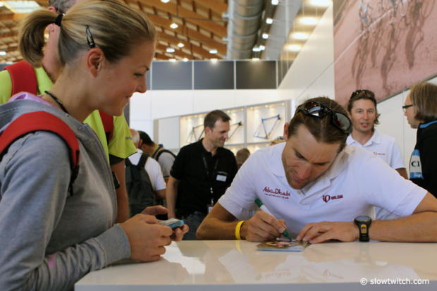 Andreas Raelert had a busy time with various sponsors but always had time a smile for fans and pesky media folks.