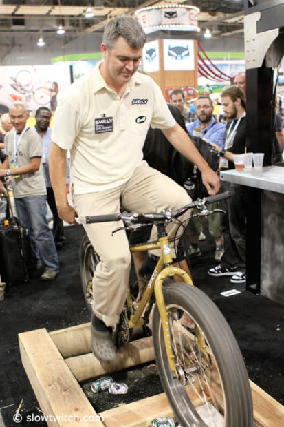 The wooden rollers in the Surly booth were quite a riot but some folks like Eric Sovern were quite agile on them.