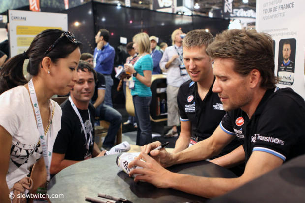 David Zabriskie and Ryder Hesjedal were very popular during their autograph session in the Camelbak booth.