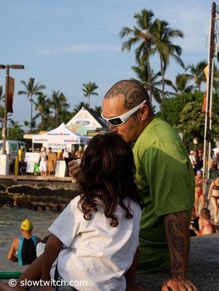 The pier was very crowded in the morning and roads around Kona were busy with runners and cyclists. Today the Ironman expo area opened up officially and the annual parade of nations took place. The most adorable event of the day though was the kids splash and dash event.