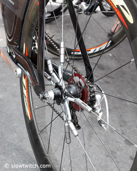 The rotational weight assistance spokes are what caught our attention, but then we noticed he had neither a pedal on the drive side, nor on the non-drive side.