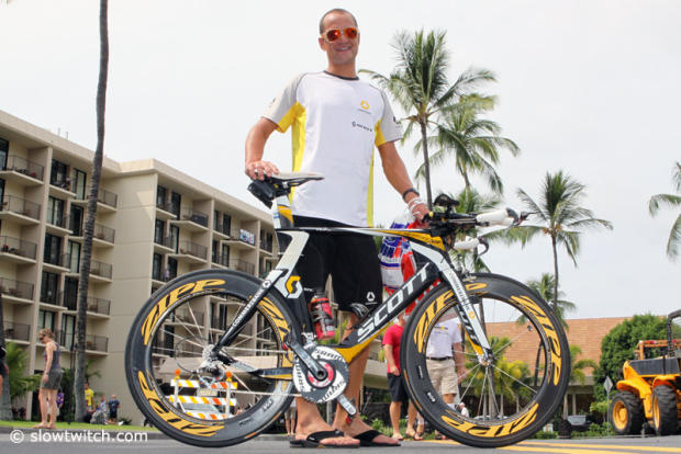 Dirk Bockel's bike is custom painted and even his TorHans hydration system matches.