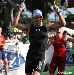 Matt: Ah, you always have the best sources, Herbert. Yes, one of my athletes, Haley Chura, has had the fastest overall female amateur swim in Kona for the last three years. However, she did not hold the title of reigning Kona swim champ from Dynamo Multisport (our team) last year, as her wily coach used old age and treachery to steal victory from The Mongoose (Haley) in 2010 by the slimmest of margins. I am convinced that Haley’s biggest goal of 2011, though unstated, was to get the title back regardless of the consequences on her race. Fortunately for both of us, she did retain the title and had a great result.