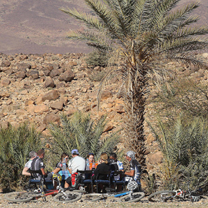 If you go on a tour led by these gents, it's like this:  pretty hard core if you want hard core—less so if you don't—and then inexplicably stylish and comfortable at night, considering where the day's ride may terminate. It might be a 4-star hotel.  Or a set of clay-brick, low sod-roof structures at 2,300 meters in elevation, at the top of an Atlas Mountain pass, that might remind you of what you could find 18,000 feet in the Himalayas.  Places like this—and there were a couple on this trip—will certainly be among the most memorable in which you've ever stayed.
