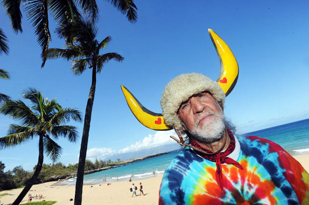 Cowman and his new horns – the original iconic headgear was lost a few years ago – at XTERRA Maui.