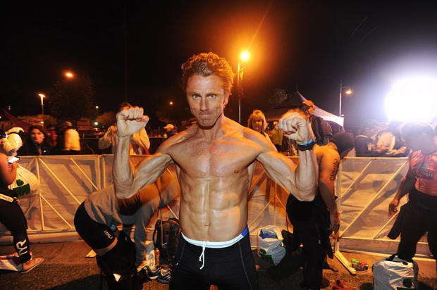 France’s triathlon swim sensation Benjamin Sanson displays his sculpted abs before the start of Ironman Arizona.