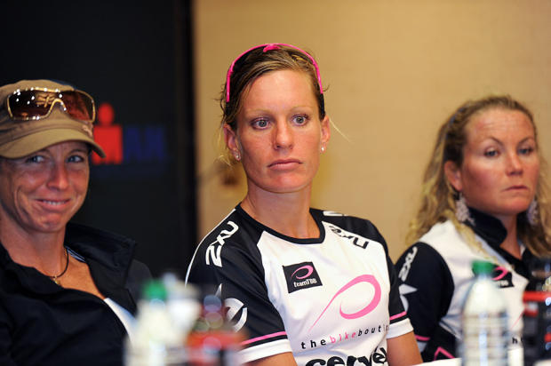 Caroline Steffen is lost in thought at the Ironman World Championship pre race press conference in Kona.