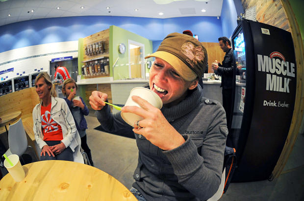 The draw is not only the yogurt and the healthy, tasty toppings. But thanks to Kelly Reed, mother of three children and wrangler of several dogs as well as her Olympian husband, it is also a very kid friendly, community oriented gathering place for the endurance sports crowd.