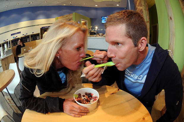 Boulder has many well known hangouts for triathletes seeking sustenance and camaraderie. Among the favorites are Amante and Vic’s for coffee, Walnut Café for nutritious breakfasts and lunches, and the Walnut Brewery for beer and ale. Since it opened last September, Matt and Kelly Reed’s BOOM Yogurt Bar [name inspired of course by Matty Boom Boom Reed] on 30th Street has attracted a strong triathlon clientele including Mirinda Carfrae and Tim O’Donnell, Michael and Amanda Lovato, Julie Dibens, Richie Cunningham, Jasmine Oeinck, Billy Edwards, James Hadley, Joanna Zeiger, Flora Duffy, and Hall of Fame runner Colleen De Reuck.