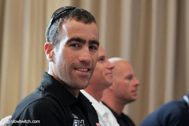 Eneko Llanos won this race in 2010 and sits here with Chris Lieto and Dirk Bockel awaiting the pres conference.