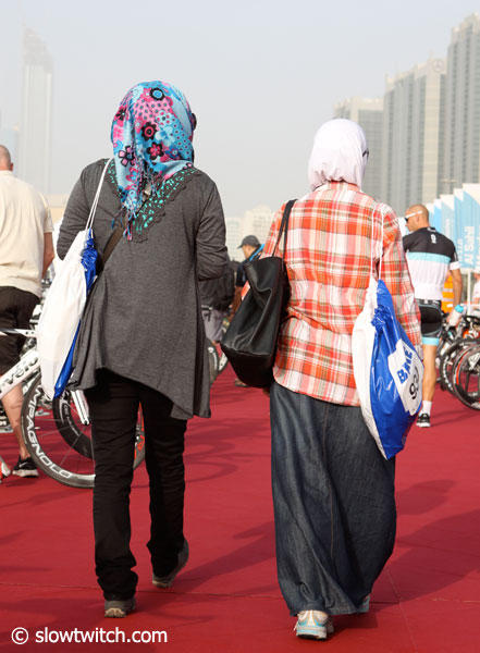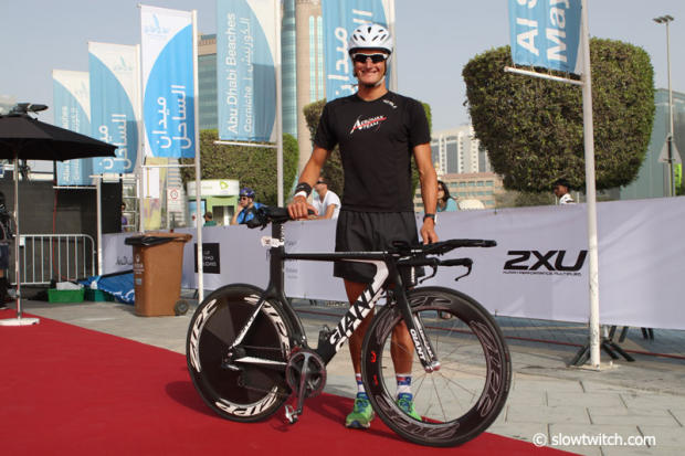 The last day before the 2012 Abu Dhabi Triathlon was busy with athletes getting one more swim in and then it was time already to check-in the race bikes into transition.